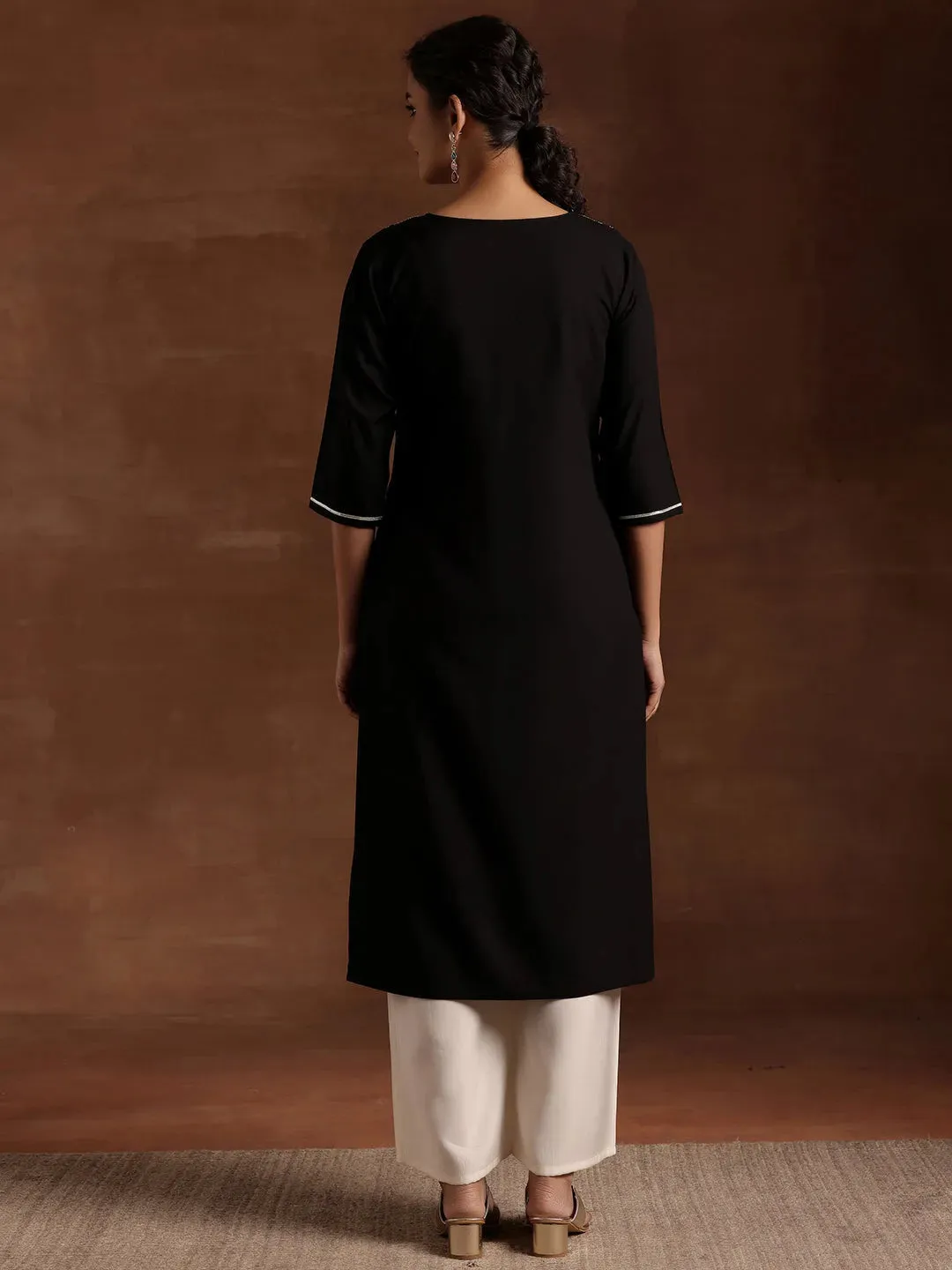 Black Embellished Cotton Straight Kurta