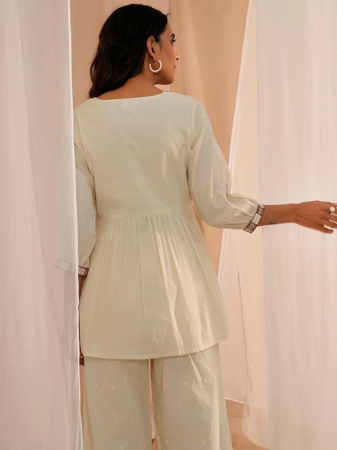 Off White Yoke Design Cotton Straight Kurta